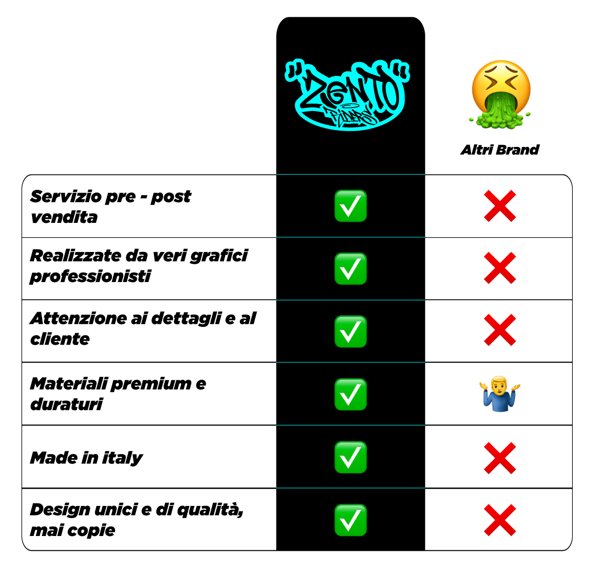 Gli altri brand, disegnano kit unicamente per venderli, non si fermano a pensare a quanto il design sia importante, e vestire una moto non e' un gioco, ma un enorme responsabilita' perche' quelle linee, quei colori, creeranno ricordi indelibi, e se fatti bene non ti stuferanno mai, anche quando in futuro farai vedere la foto della tua moto. Non fare la scelta piu' comoda, fai la scelta migliore. Scegli Zento!